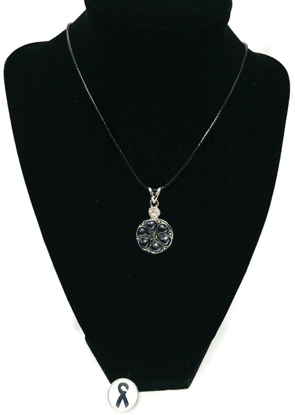 Support Ribbon Officer Thin Blue Line Snap on 18" Leather Rope Diamond Pendant Necklace W/ Extra 18MM - 20MM Snap Charm